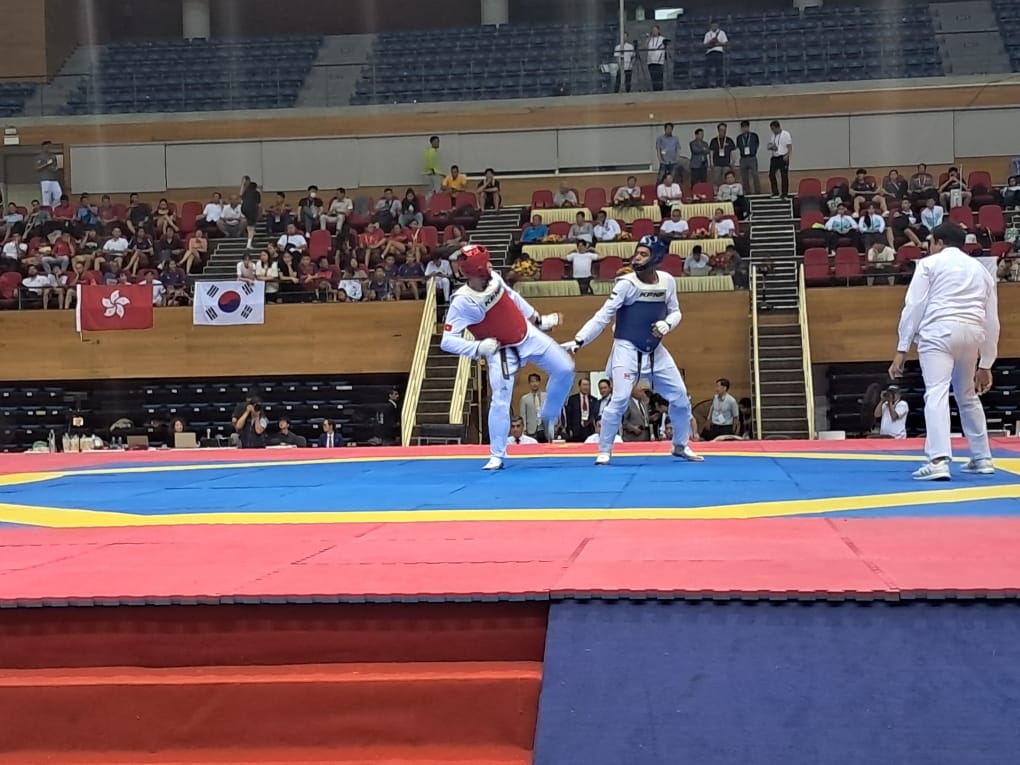 محمد العداربة افتتح المشاركة الأردنية في اليوم الثاني من البطولة من دور الستة عشر بعد الخسارة أمام الصيني ساي زاهون (2-0) في وزن تحت 74 كيلو غرام.