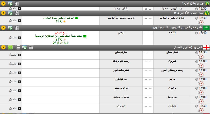 الميدان الرياضي : مواعيد مباريات اليوم