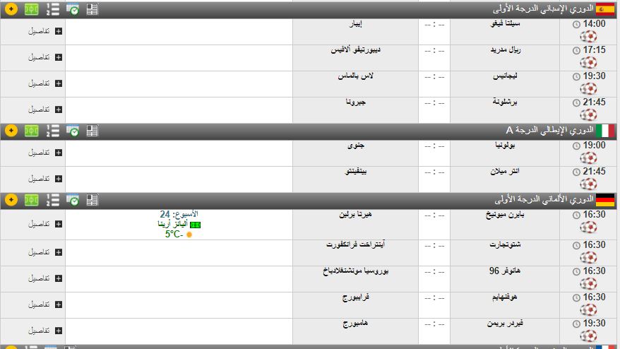 مواعيد مباريات اليوم
