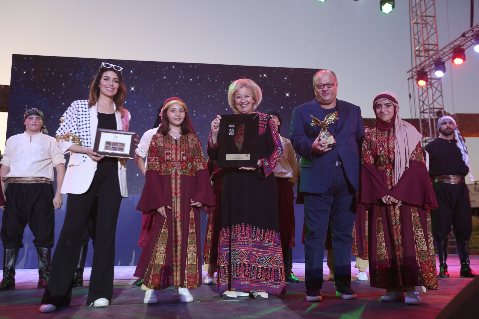 واختتمت الفرقة وصلتها الفنية بلوحة فنية تزينت بعلم فلسطين والكوفية الفلسطينية على انغام اغنية "موطني" التي تفاعل معها الجمهور بحماس كبير، وقد كرمت رئيسة اللجنة العليا لمهرجان جرش وزيرة الثقافة هيفاء النجار والمدير التنفيذي لمهرجان جرش ايمن سماوي الفرقة بدرع المهرجان وشكرتهم على هذه الليلة الفلسطينية.