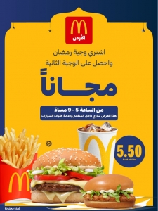 أعلنت سلسلة مطاعم ماكدونالدز الأردن عن إطلاق عرض خاص بمناسبة شهر رمضان، يتيح للعملاء فرصة الاستمتاع بوجبة إفطار رمضان - جراند تشكن ديولكس أو بيج تيستي، مع ساندويتش تشكن برغر بـ 5.50 دنانير فقط! ومن الساعة 5 إلى 9 مساءً،