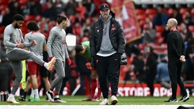 وأظهرت مقاطع فيديو مدرب ليفربول وهو يمسك بالعضلة الخلفية للفخذ، أثناء عودته إلى مقاعد بدلاء فريقه..