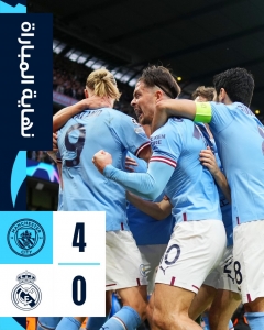 تأهل مانشستر سيتي الإنجليزي إلى نهائي دوري أبطال أوروبا بعد الفوز على ريال مدريد الإسباني بنتيجة 4-0، في المباراة التي أقيمت على ملعب "الاتحاد" في إياب دور نصف النهائي.