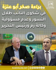 براءة صخر أبو عنزة في شكوى النائب طلال النسور وعدم مسؤولية وكالة رم ورئيس التحرير