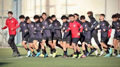 مثّل المنتخب في اللقاء: أزد يعيش، أحمد بدران، فيصل أبو دهيم، نور الدين عمرو، سند طبيشات (ماجد العدوان)، ورد أيمن (أحمد الخرابشة)، أسامة الجوهري (عدنان بكار)، محمد العمرة (ممدوح أبو سعد)، محمد خليل، راشد فيضي، أحمد المراعية (محمد سامر) (يزن قدادة).ويتجدد اللقاء بين المنتخبين، عند السابعة مساء الجمعة 20 كانون الأول/ ديسمبر الحالي، على الملعب نفسه، مع اختتام معسكر المنتخب في البحرين. عدد المشاهدات : [ 4616 ]