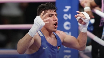 لاعب منتخب الملاكمة زياد عشيش يحقق فوزه الأول ببطولة العالم