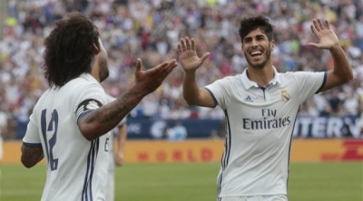 وافتتح الريال الذي غاب عنه نجمه البرتغالي كريستيانو رونالدو بسبب الحرمان، التسجيل مبكرا، بعدما سدد أسينسيو كرة بعيدة المدى سكنت شباك برشلونة في الدقيقة الرابعة.