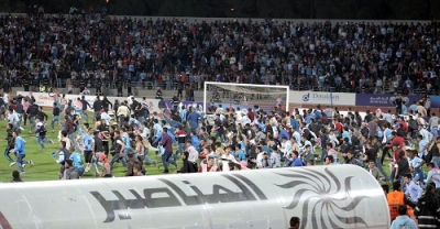 وبعد نهاية المباراة عمت الفوضى داخل ارض الملعب الذي اقتحمه المئات من جمهور الفيصلي، في مشهد يؤكد فشل سياسة ازالة الحواجز الحديدية من الملاعب الاردنية، رغم محاولات رجال الدرك لمنعهم، في الوقت الذي لم تسلم فيه مقاعد الجمهور من التكسير من قبل فئة من جمهور الوحدات الذي وجهها نحو الملعب.