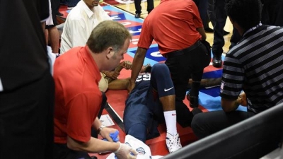 واضاف آدم سيلفر مفوض رابطة الدوري الامريكي للمحترفين في بيان: "كان من الصعب مشاهدة الاصابة التي تعرض لها بول جورج الليلة وهو يمثل بلاده."