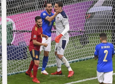 وقال موقع "فوتبول إيطاليا"، إن لاعبي إسبانيا أدركوا سوء الوضع على ملعب سان سيرو، حيث توجه بوسكيتس، نحو دوناروما، لمساندته ورفع معنوياته.