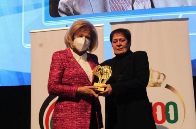وفي نهاية الاحتفالية كرمت الوزيرة المشاركين في العمل بتسليمهم دروع تذكارية.