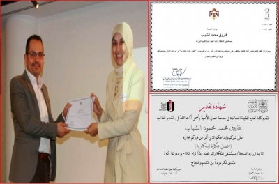 و تقديرا من الجامعة سلم الاستاذ الدكتورغالب عريقات عميد الكلية شهادة تقدير للطالب على تمييزه في هذة الفكرة الابتكارية وسيتم عرض هذه الفكرة على حاضنة الاعمال في الجامعة للعمل على تبنيها.