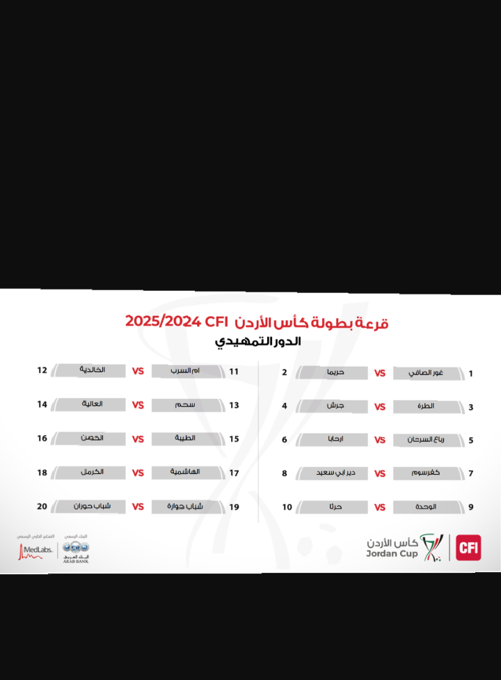 للاطلاع على جدول مباريات الدور التمهيدي لبطولة كأس الأردن CFI