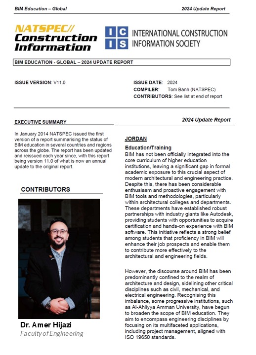 حيث يعد هذا الإنجاز الأكاديمي الفريد من نوعه محطة مهمة، والذي جعل جامعة عمان الأهلية الجامعة الوحيدة في الأردن، وفي المنطقة العربية بأكملها، التي تم إدراجها في هذا التقرير. ويعزز هذا الإنجاز مكانة الأردن وجامعة عمان الأهلية كمساهم رئيسي في مجال نمذجة معلومات البناء (BIM) على الصعيد الإقليمي، ويضع الجامعة كمركز للشراكات الأكاديمية مع القطاعات الحكومية والخاصة.